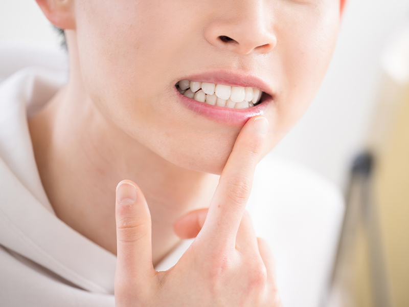 口呼吸の癖があったり、加齢や薬の影響で唾液が少なかったりすると、口の中が乾燥し、細菌が繁殖しやすい環境になります。乾いた粘膜は傷つきやすいため、そこから炎症が広がってしまうことも多いです。